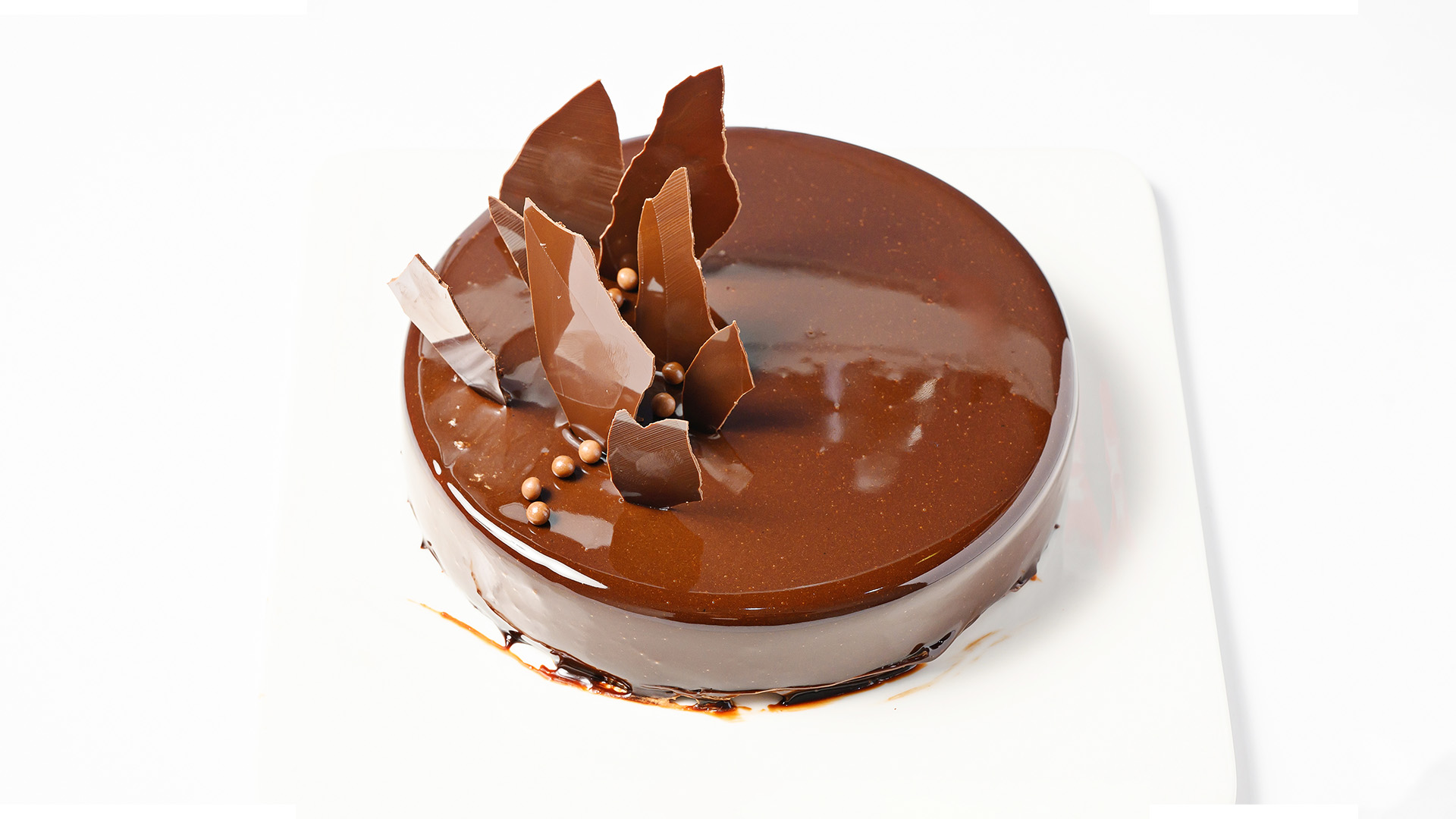 This delicious dark chocolate mousse cake was crafted with chocolate lovers in mind. Its interior featured an exotic yet soft mix: a passion fruit purée and a milk and honey custard with milk chocolate. To achieve a taste profile that's not too bitter or sweet, the chef chose to combine these soft componentes with two types of dark chocolates.