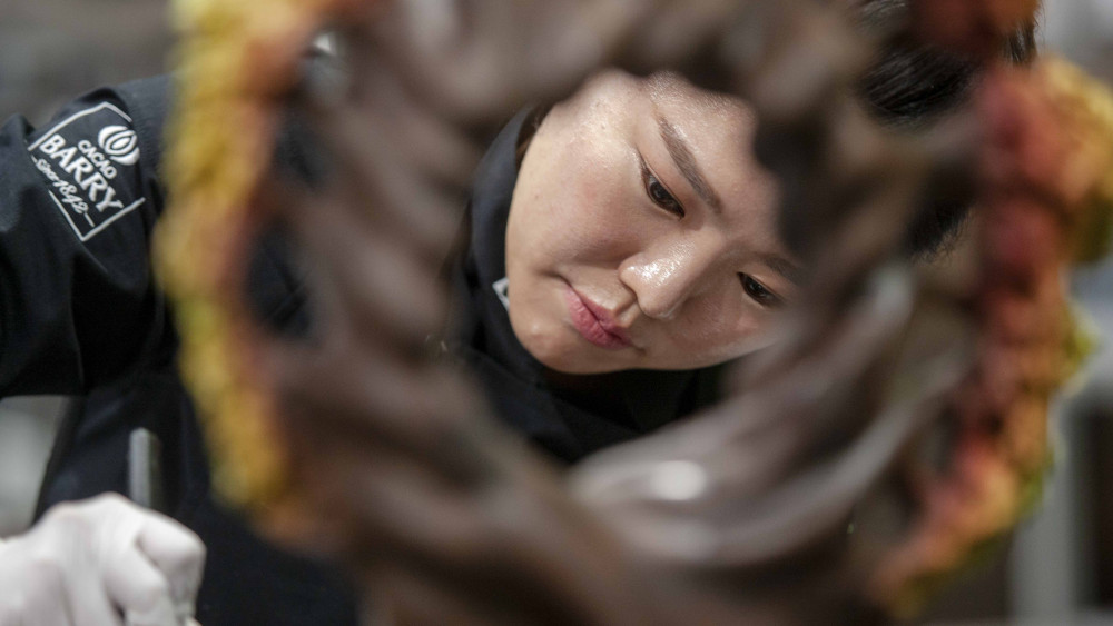 Korean Chocolate Master Eun-Hye Kim racing against the clock to complete her challenge.
