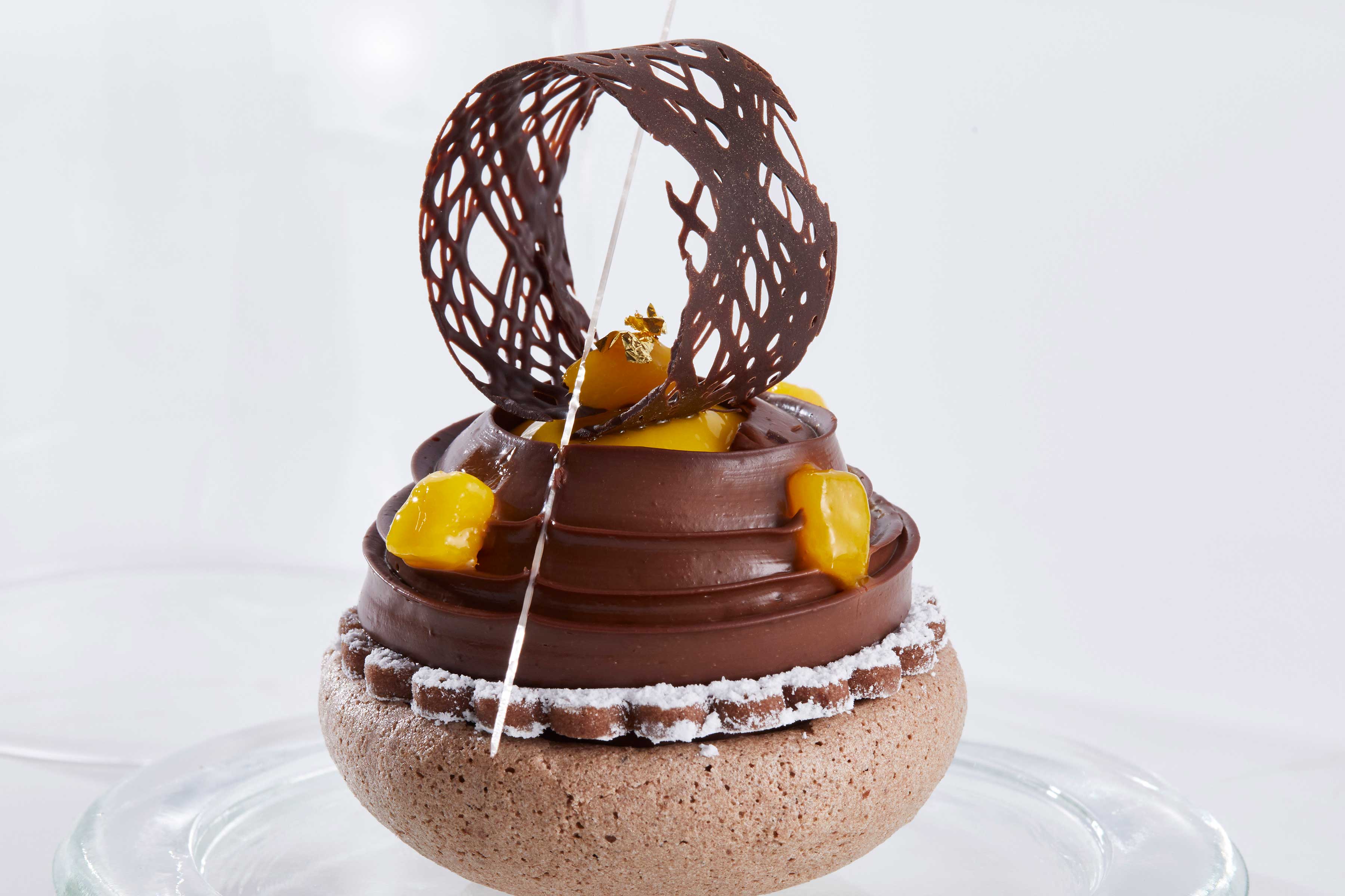 Lemon, praline feuilletine, orange, candied peanuts and Alunga 41% by Florent Cheveau