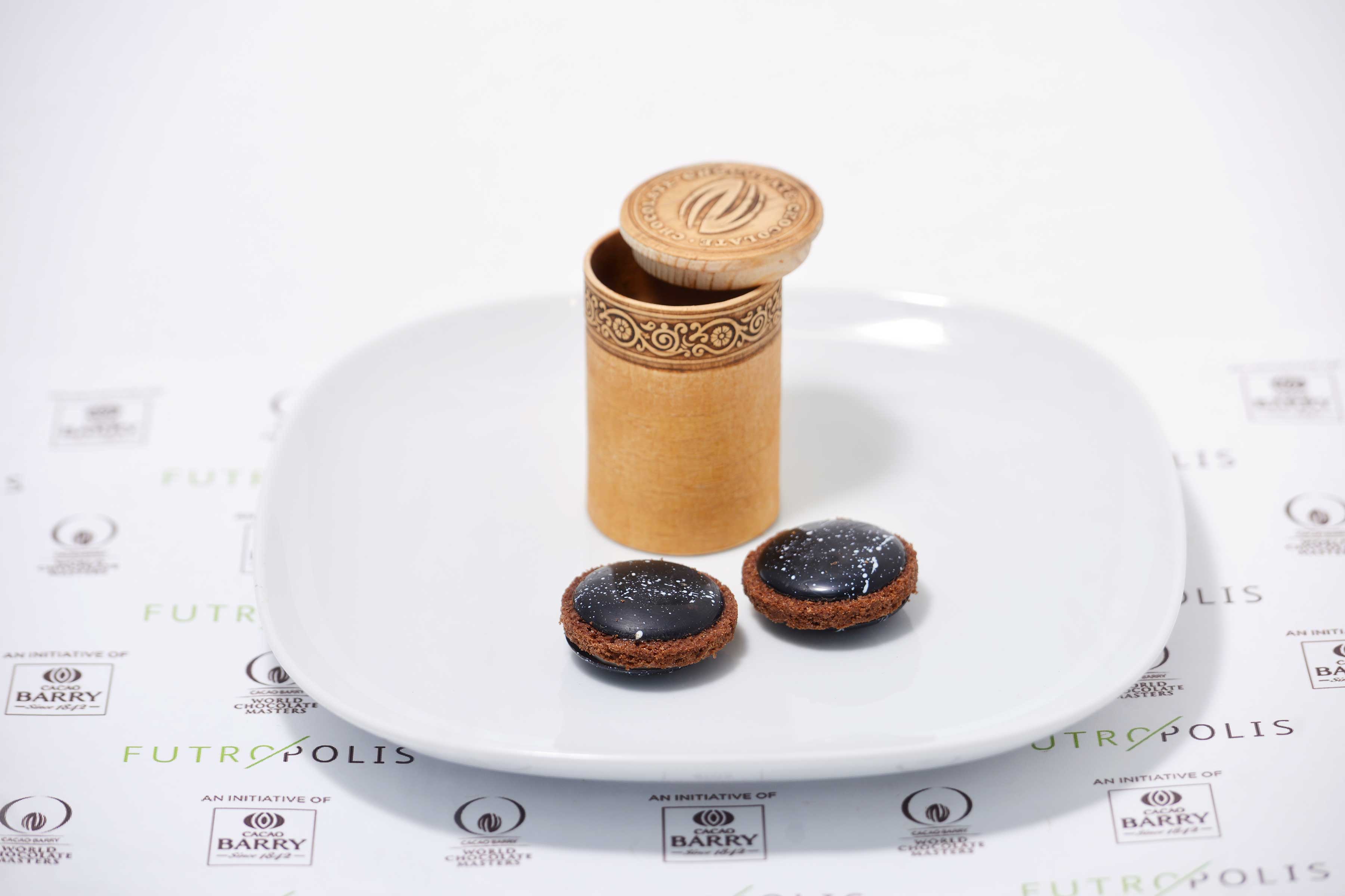 An elegant Fresh Flavours of Futropolis made with Breton shortbread, Tanzania Origin chocolate, Ghana Origin chocolate mousse, vanilla ice cream and rich notes of almonds and hazelnuts.