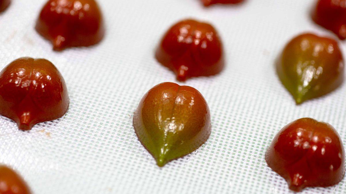 Melt Ambre java and hazelnut praline. Add Pailleté Feuilletine and orange zest. Use at 28℃. Roll out until 3mm and cut into (2.5 cm diameter) round.