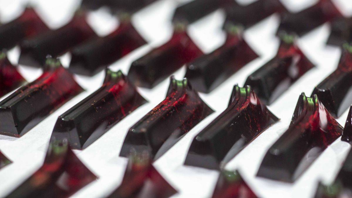 Mix and boil cream and buckwheat honey. Pour onto Cacao Barry chocolate.